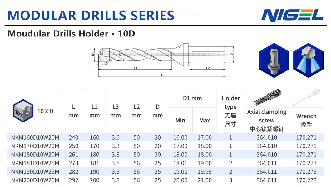 Tá córais dril Nigel in ann freastal ar riachtanais ard-throscatha machaíochta i mblianta éagsúla, ag cabhrú le réiteach táirgíochta níos fearr a bhaint amach. Tá dearbhán malartaithe casta agus fadtéarmach acu atá comhoiriúnach le clár éag agus carbide, ag cinntiú saol uirlis den scoth. Is réiteach uirlis ardchaighdeáin é a chomhcheanglann eacnamaíocht agus míreabhailíocht le haghaidh feidhmchláir driléala idirmhéid.
