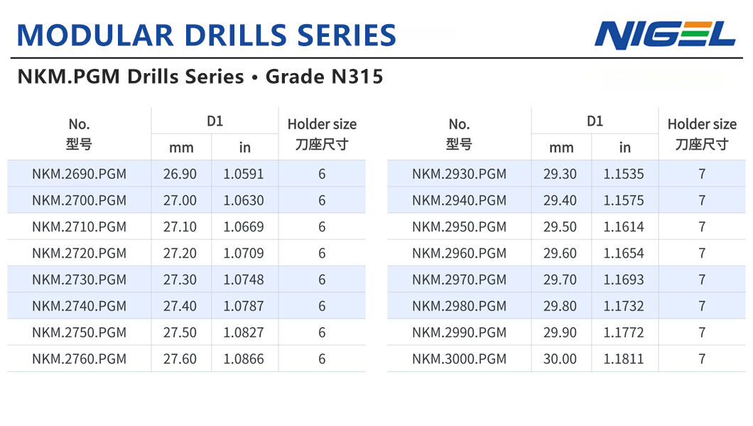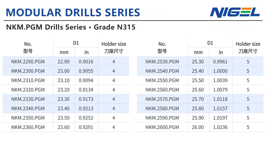 מערכות הנקבוב של Nigel מתאימות לצורך בעיבוד בקצב גבוה ביותר במגוון מצבים, ועוזרות להשיג תפוקה מרשימה. עיצובם עמיד וחזק עם כותנות ניתנות להחלפה, והן תואמות גם לכותנות פלדה וגם לכותנות קרبيد, ובכך מבטיחות חיים ארוכים של כלי עבודה. זוהי פתרון כלים איכותי שמשלב כלכלה ואמינות ליישומי ניקוב בקוטר בינוני.